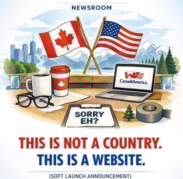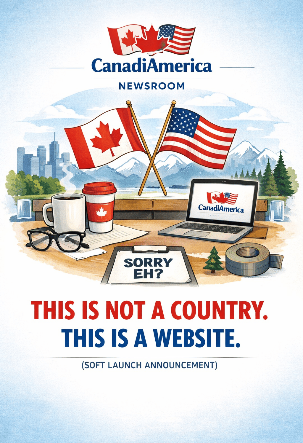 CanadiAmerica officially soft-launches: a satirical brand using humor, merch, and Canadian politeness to explore uncomfortable questions.